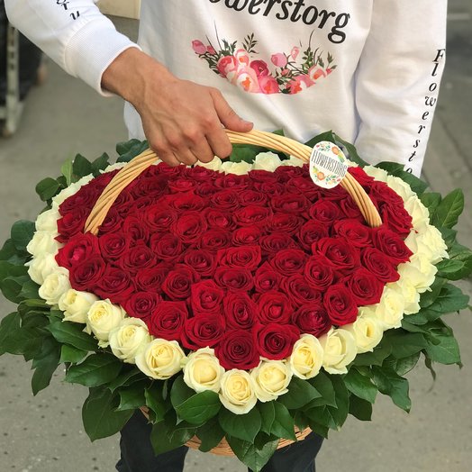 101 Роза в Корзине в Виде Сердца