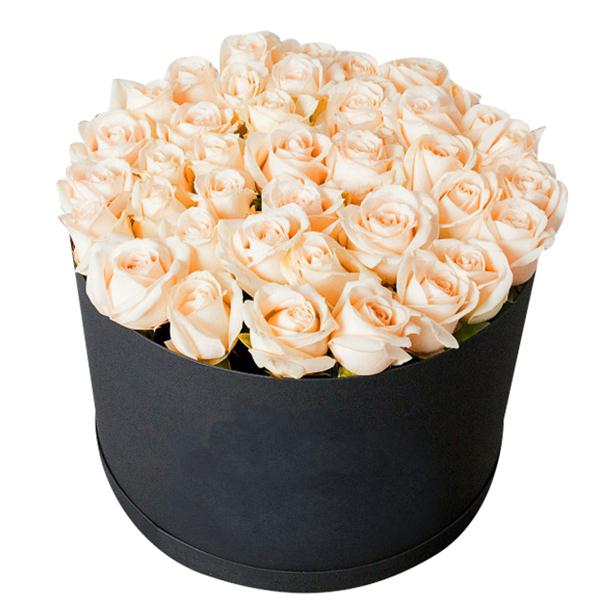 51 кремовая роза в шляпной коробке