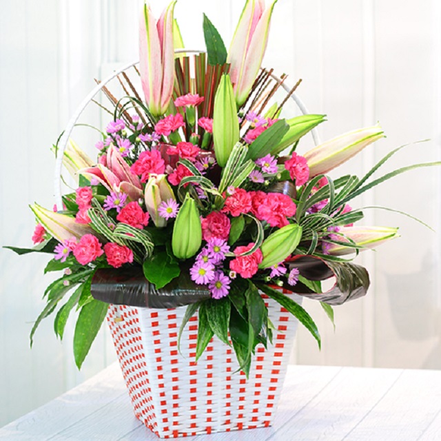 Pink & Purple bouquet in container